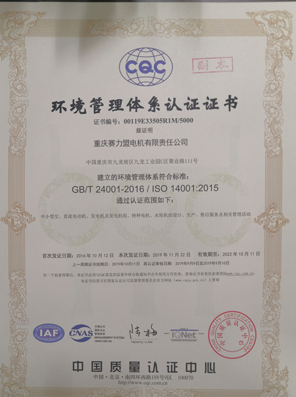 環(huán)境管理體系認(rèn)證證書