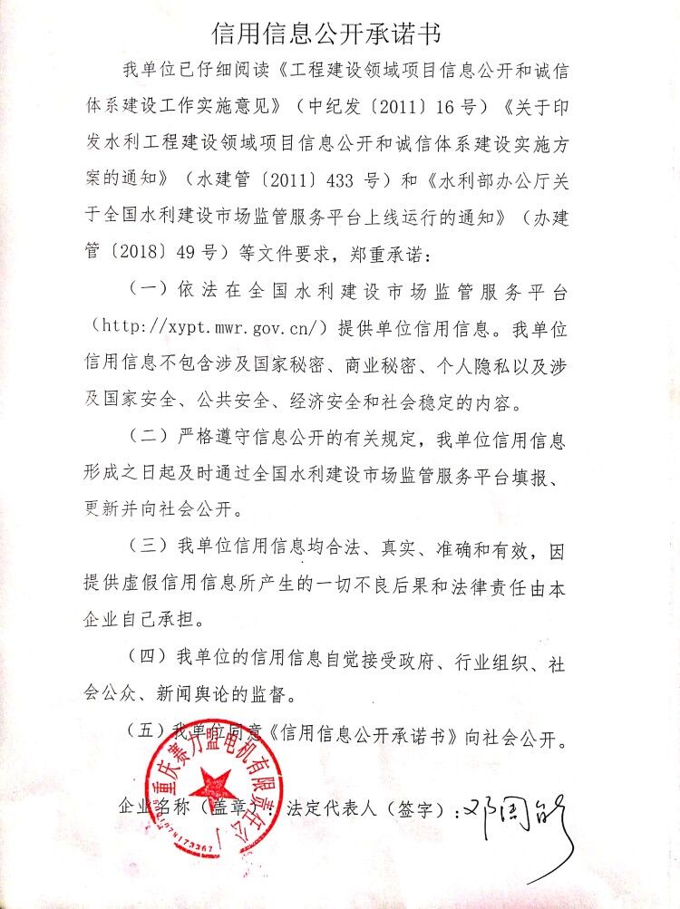 信用信息公開承諾書