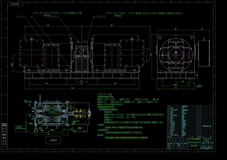 拖動電動機(jī):Y500-4P 10kV(6kV)/ 50Hz 1120kW。