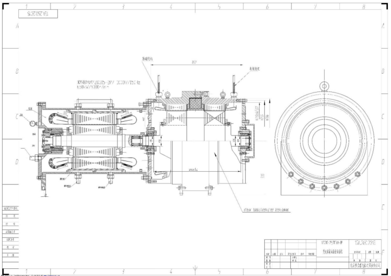 基準(zhǔn)電壓Un=3000V 基準(zhǔn)頻率f=150Hz 額定功率 Pn=650kW 極數(shù)p=2極